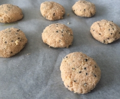 - Aprire il coperchio del Bimby e raccogliere il composto versandolo in una ciotola. Con le mani leggeremente umide formare delle palline di 4-5 cm e schiacchiarle leggermente. Disporle man mano su una placca da forno leggermente unta.
