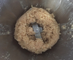 "coperchio chiuso" il salmone, la quinoa raffreddata, l'albume, il sale e il pepe. Mettere il coperchio con il misurino e frullare 5 sec vel 4. Aprire il coperchio. Raccogliere tutto sul fondo aiutandovi con la spatola. - Aggiugnere il pangrattato. Chiudere il