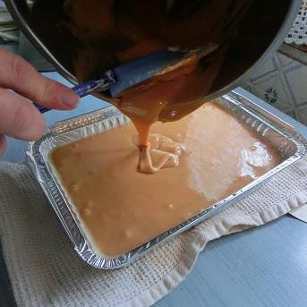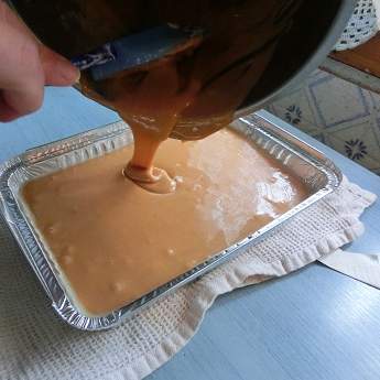 terminata la cottura amalgamare il composto a vel 5 per 15 secondi e versarlo SUBITO nel contenitore preparato (solidifica quasi subito).