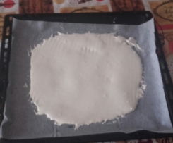 Trasferire subito nella placca, livellare con una spatola (spessore 1/2 cm) e infornare abbassando la temperatura a 60* ventilato per circa 2 ore (regolatevi col vs forno devono seccare non scurire).