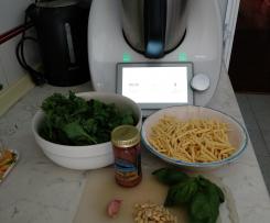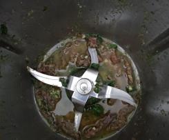 "coperchio chiuso" 150 grammi di cime di rapa già cotte, 1/2 spicchio d'aglio, 10 grammi di pinoli, il basilico. Tritare per 10 sec vel 6. Riunire sul fondo con la spatola. Aggiungere 30 grammi d'olio, il sale e mescolare per 20 sec vel 4. Mettere da parte in una ciotola capiente. - 3. Mettere nel