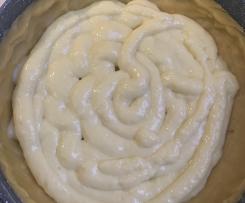 - Ricoprire la crema con l'impasto della torta margherita. Aiutarsi con un cucchiaio o una spatola per arrivare a coprire tutta la superficie.
