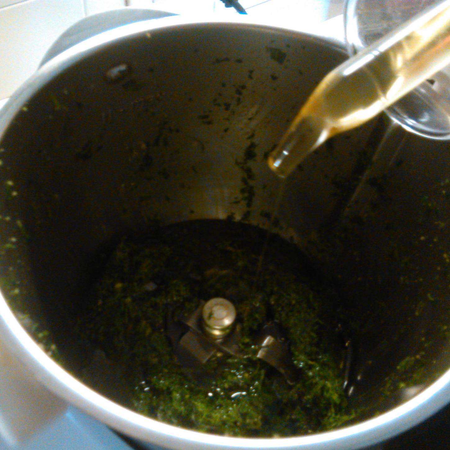 Aggiungere gli 80 g. d'olio evo e frullare per 12" vel. 5
