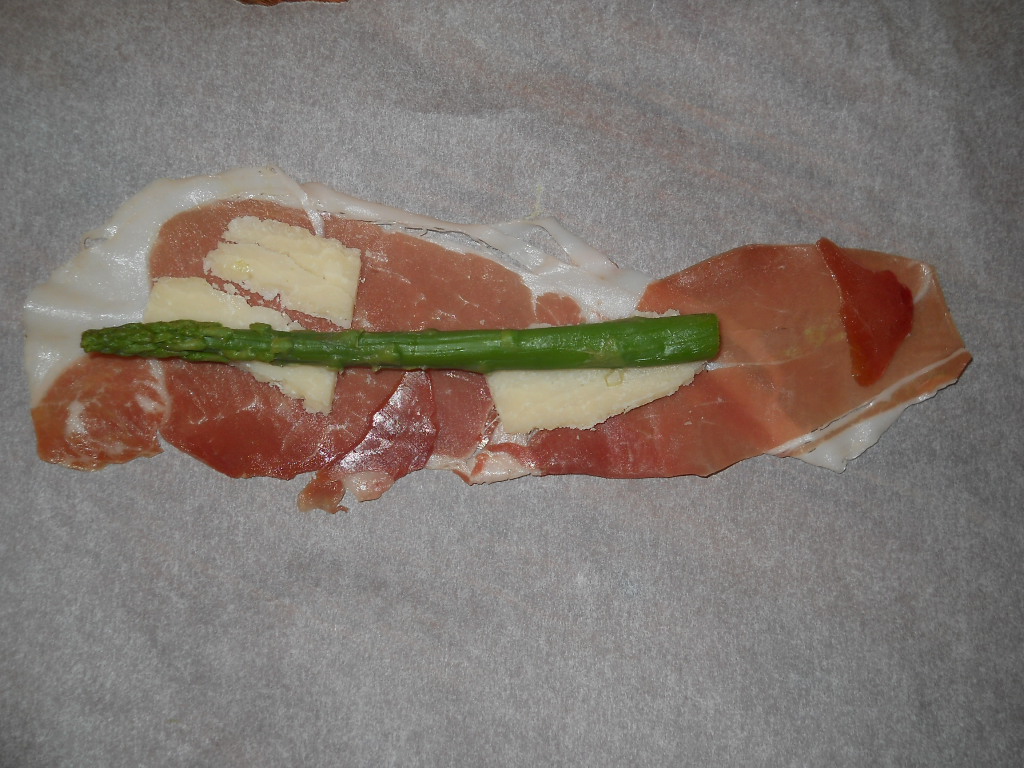 Mettere nel boccale acqua allae lame e inserire il cestello e gli asparagi cuocere per 10 Minuti tem Varoma Vel1 Quando sono pronti fate raffreddare una volta freddi prendere le fette di prosciutto crudo ed su ogniuna adagiare le scaglie grana e un asparago e arrotolare su se stessi