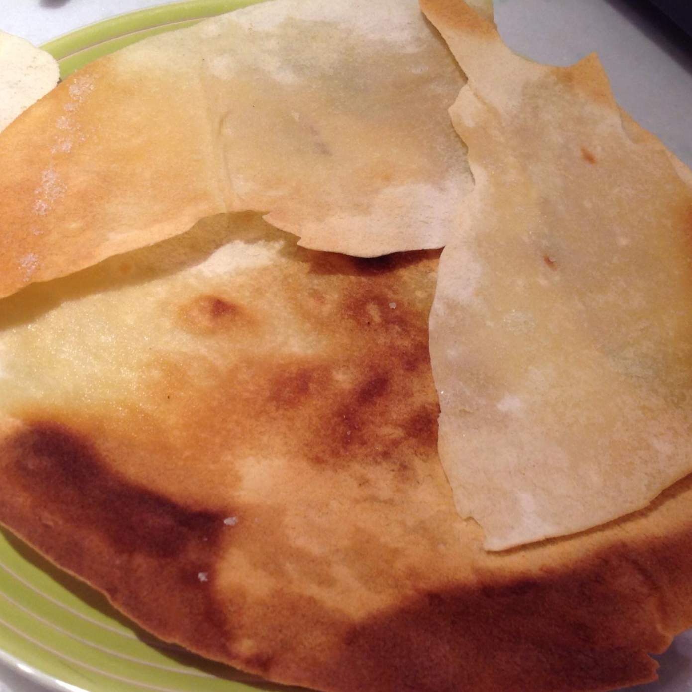 Mettere la teglia in forno per pochi secondi sin quando il primo strato di pane sarà dorato. Non perdete di vista il forno! Il pane é così sottile che impiegherà veramente poco a dorare.