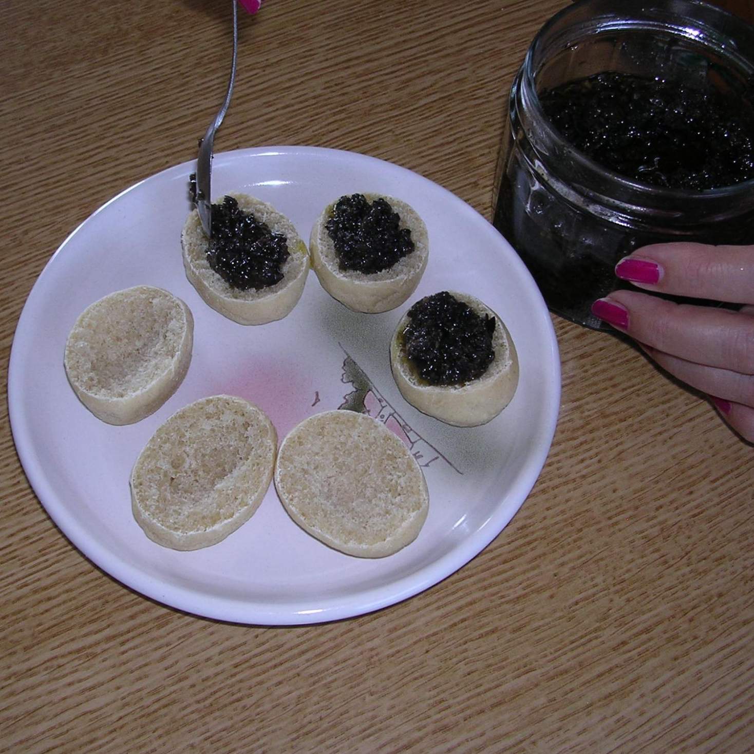 Svuotarli un poco e riempirli col patè di olive nere, appoggiate sopra ognuno un salamino dal lato più diritto per fare il collo del cigno e i due pezzetti della calotta che serviranno da ali.