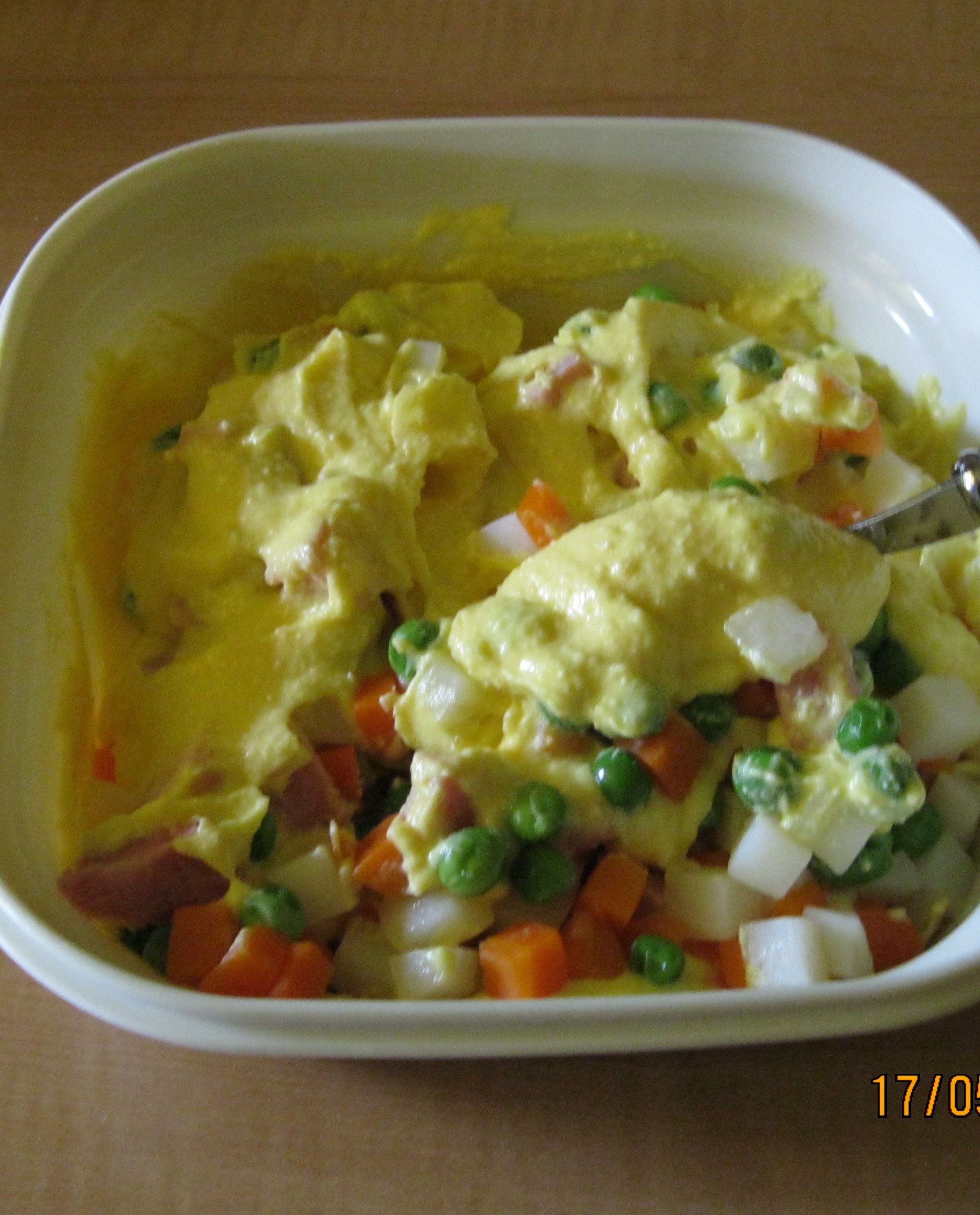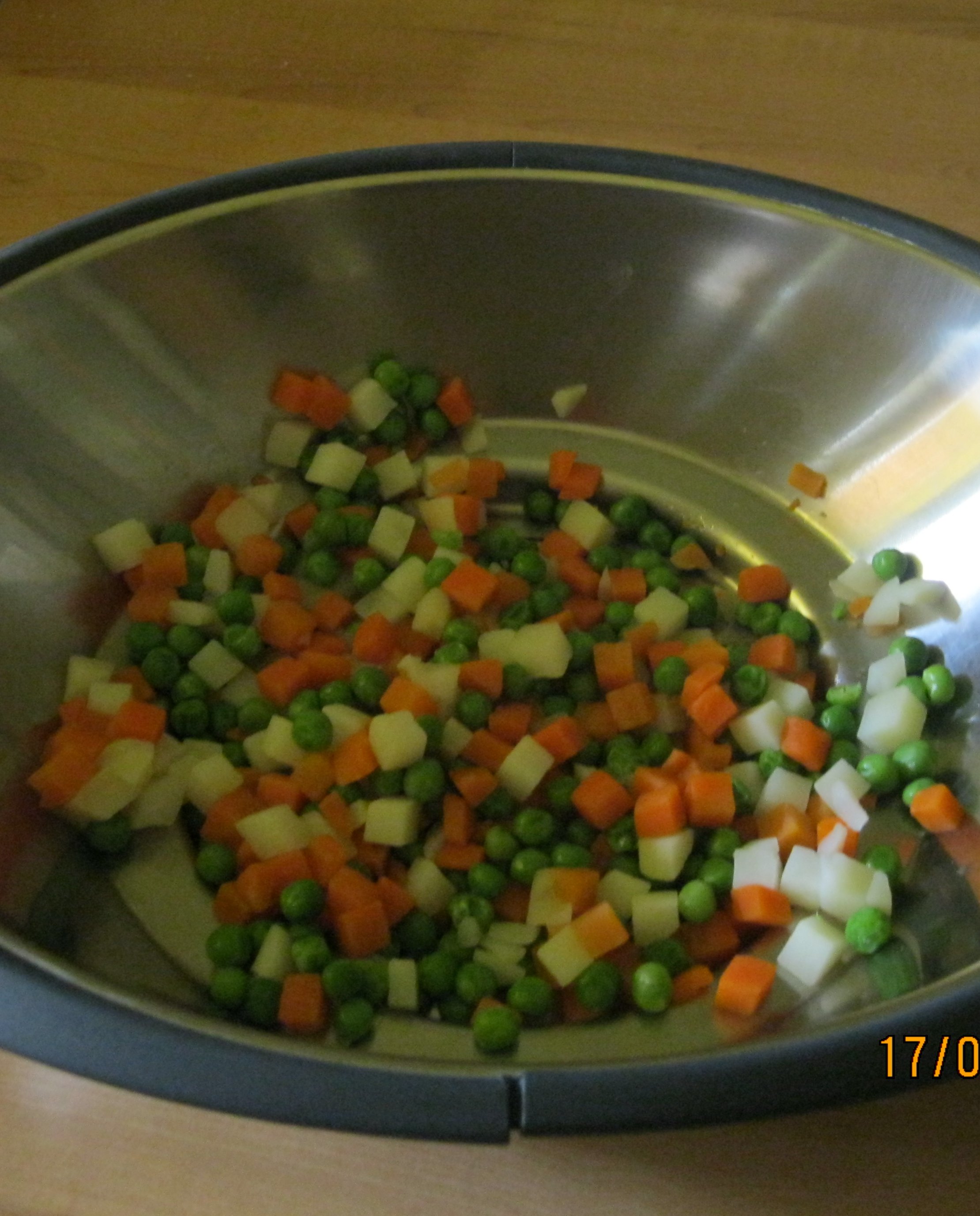 - 250 g di verdure, (piselli, patate, carote) - io ho usato quelle a tocchetti surgelate