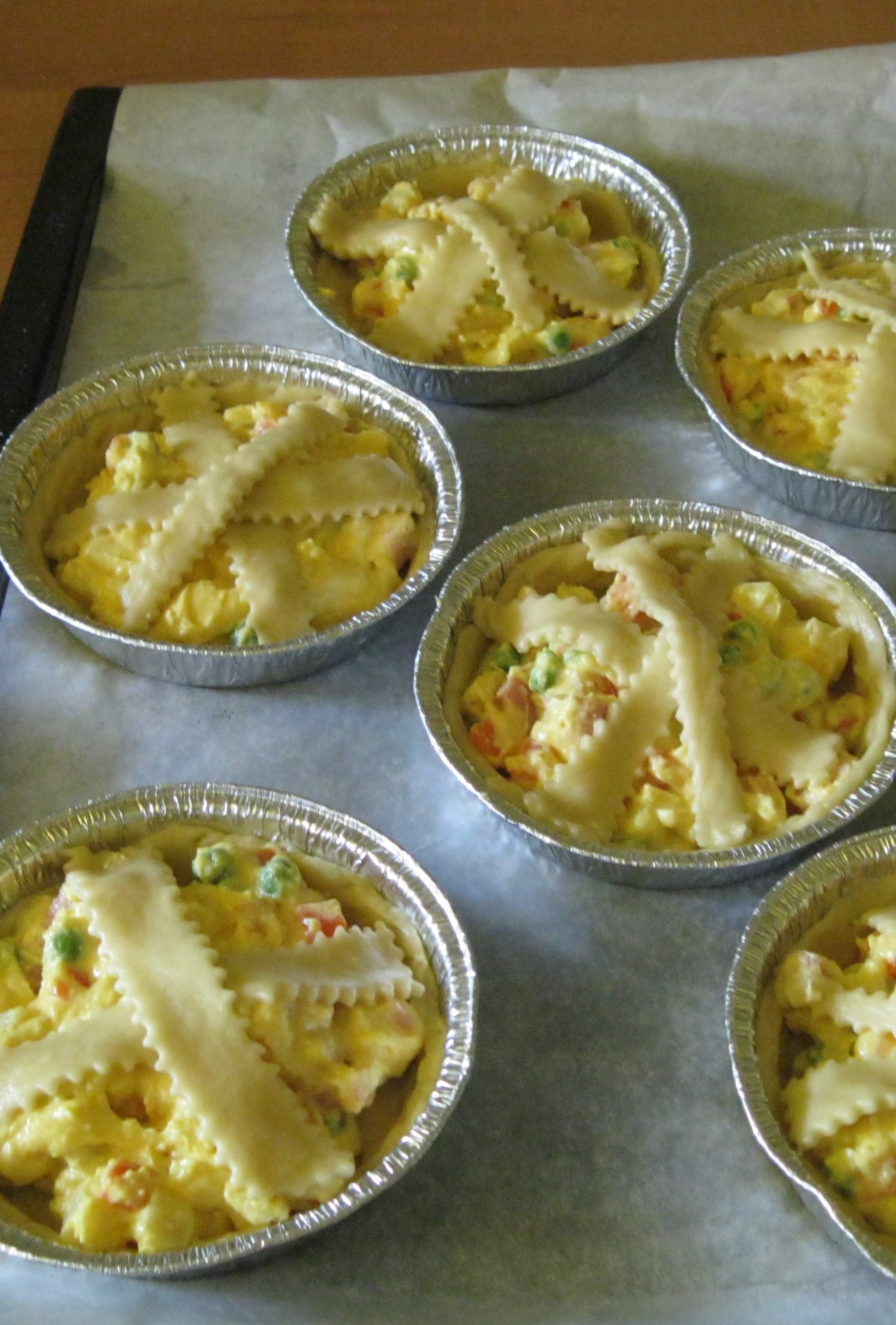 - Unire il composto di uova alle verdure fredde, e distribuire nei gusci di pasta.
