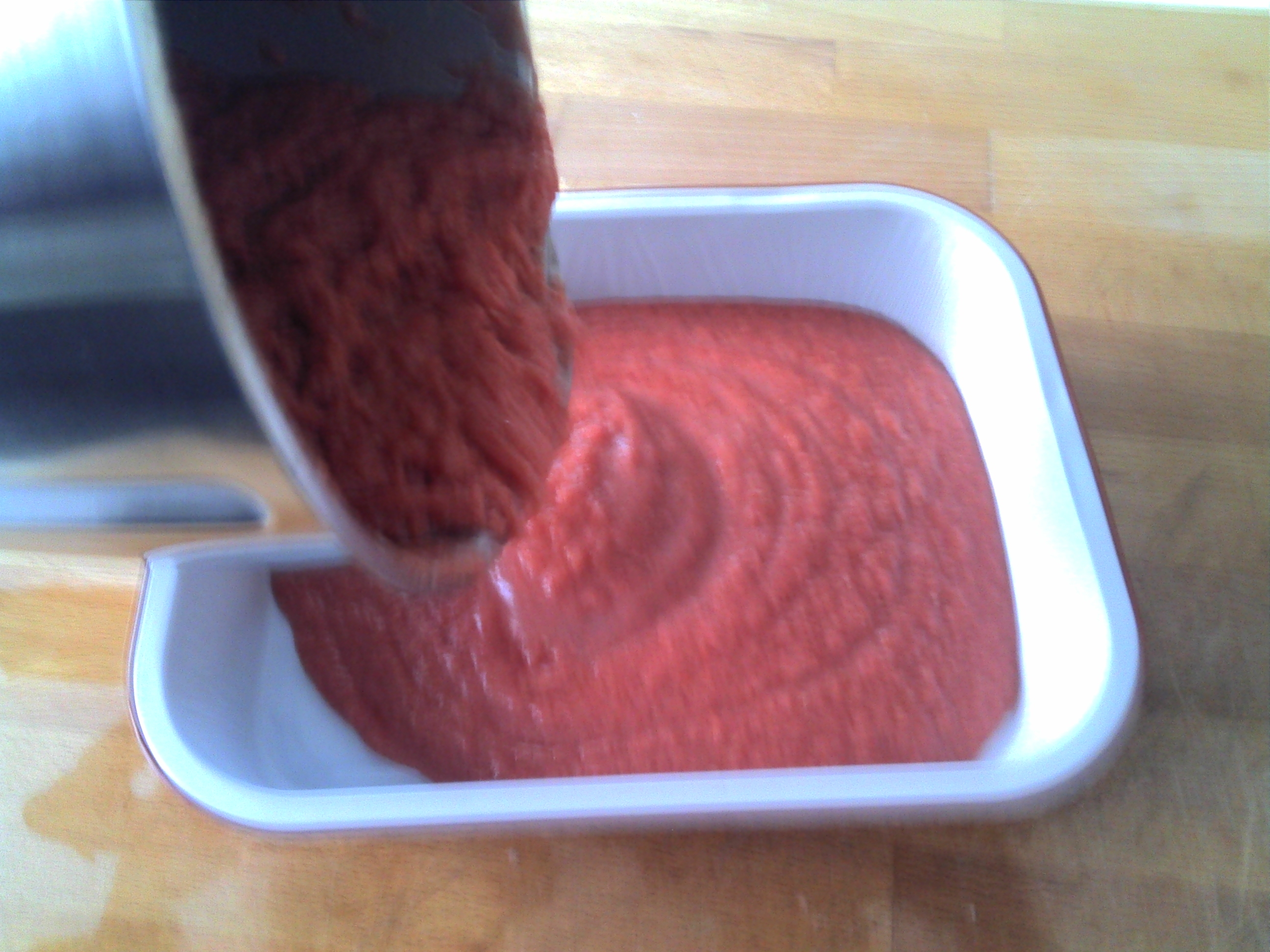 - Versare il gazpacho in un contenitore basso e congelare per 12 ore.