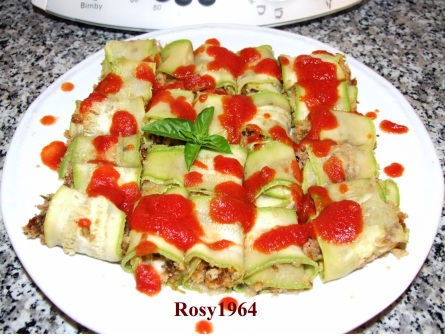 "coperchio chiuso" con il coperchio, mettere sopra il vassoio e cuocere per 20 min./Varoma/vel.1.A fine cottura, disporre gli involtini di zucchina su un piatto da portata e irrorarli con la salsa di pomodoro, nella quantità che più vi aggrada.