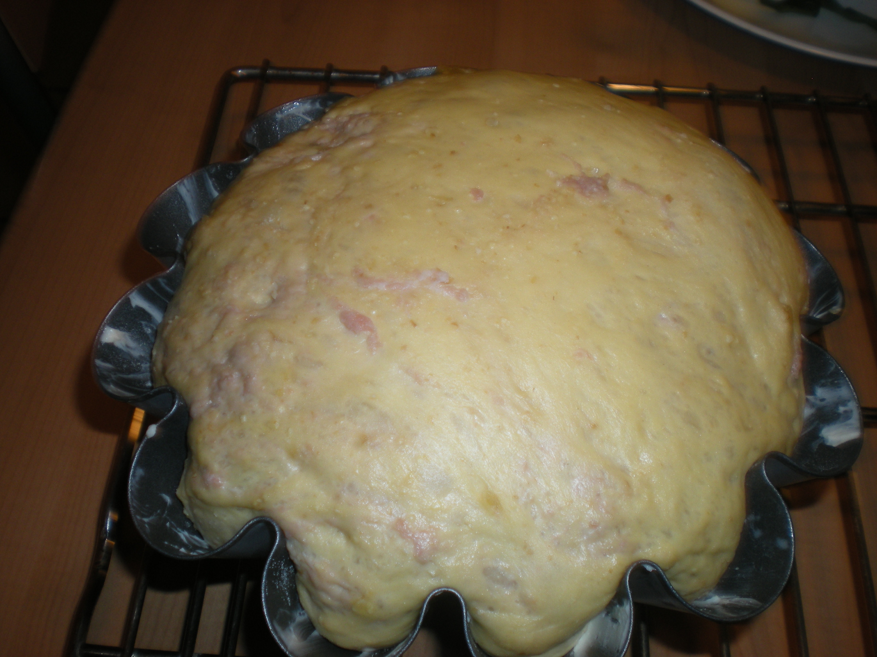 Buonissimo! E' un'ottima versione dello Speckgugelhupf della Svizzera tedesca e dell'Alsazia. Mi chiedo però perchè non lo hai rovesciato per la foto?