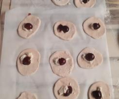 - Una volta ottenuto tutti i dischetti mettere in ogni uno un pezzo di gorgonzola e mezza ciliegia