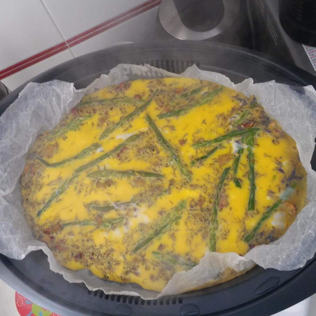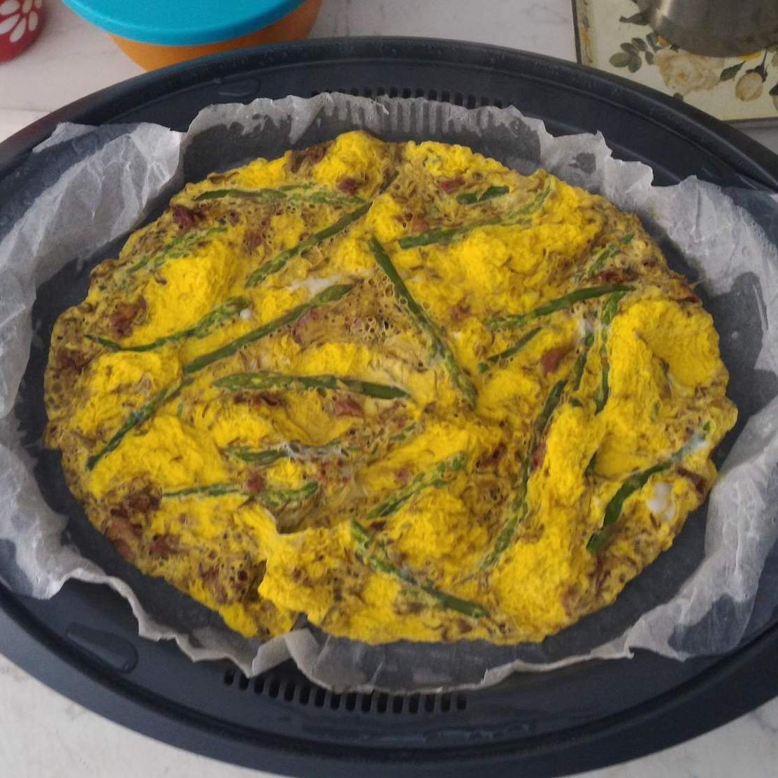 4. Versare il composto per l'omelette sul vassoio del varoma, mettere il coperchio e cuocere per 10 min temp varoma vel 1.