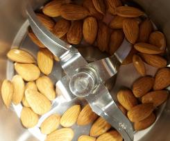 1. Mettere nel coperchio chiuso"coperchio chiuso" le mandorle e tritare: 5 sec./vel. 7. Trasferire in un piatto e tenere da parte