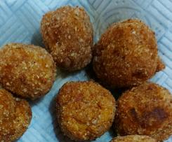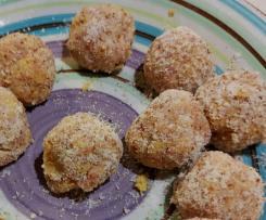 5. Con le mani leggeremte umidide prendere del impasto e formate delle polpettine grandi come una noce. Passatele nella granella di mandorle e friggerle con olio ben caldo finche non sarano ben cotte e dorate.Scolate su carta assorbente da cucina