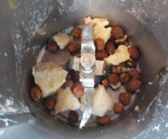 "coperchio chiuso" grattuggiate formaggio e nocciole - Unite a questo trito il petto pollo e la pancetta che avremo tritato in precendenza aggiungerete l'uovo aggiustate fi sale e pepe e amalgamate il tt per 10 Sec Vel 6/7