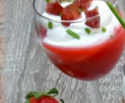 - Riprendere i bicchieri e togliere la pellicola Adagiare sulla salsa raffreddata un ciffo di mousse alla crescena ,guarnire con erba cipollina e quache strisciolina di bresaola. Servite fresa