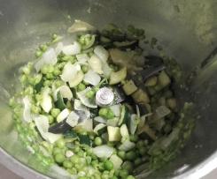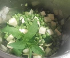 Togliere l'aglio. - Aggiungere zucchina, pisellini, menta e pepe macinato 100°C 12 Min. Vel.