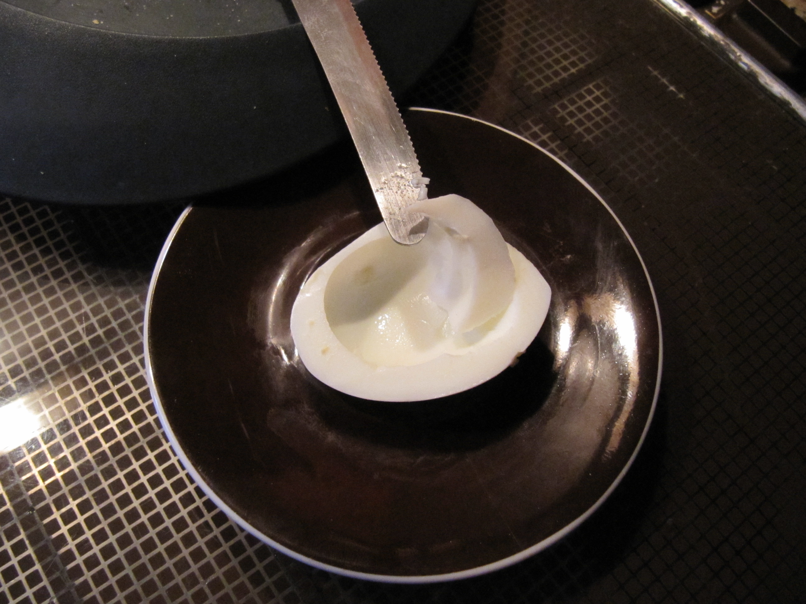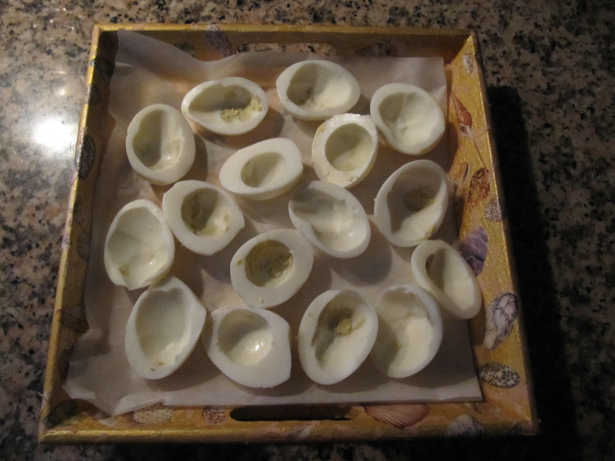 Per una migliore riuscita, rassodare le uova con molto anticipo, anche il giorno prima, cosicché siano più corpose e il bianco non si lesioni quando vengono tagliate a metà.