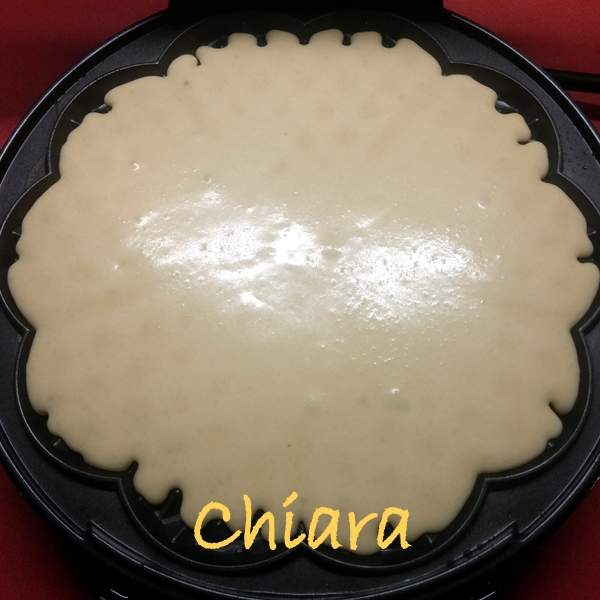 Io ho una piastra piccola ed è stato sufficiente un mestolo di pastella.