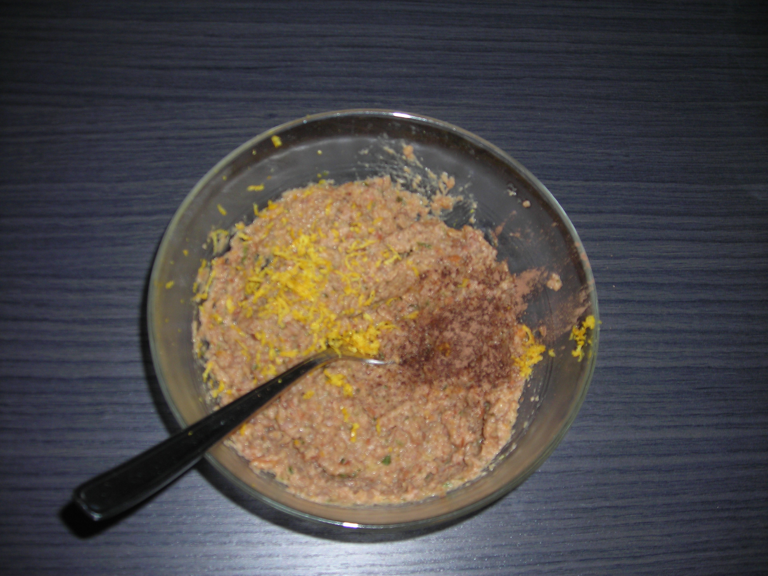 - Incorporare la scorza di limone, noce moscata, il formaggio, pangrattato, finchè non ha la consistenza di " un ripieno".