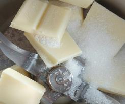 "coperchio chiuso" mettere cioccolata a pezzi zucchero e polverizzare 10 Sec Vel 8 radunare con spatola - Aggiungere panna latte pasta di pistacchio pura pizzico sale e maizena o farina di fecola
