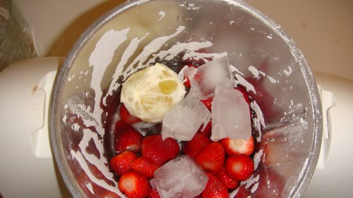 Io ho fatto così fruttosio succo limone frullato 1 m turbo, poi ho aggiunto ghiaccio 100gr acqua e 100gr vino rosso e fragoleho frullato il tutto 1 m turbo eccolo qua