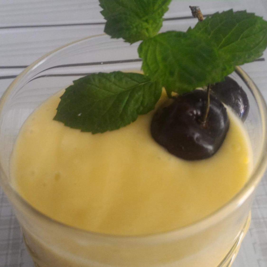 4. Servire nei bicchieri e guarnire a piacere (io ho utilizzato della menta fresca e 2 ciliegie).