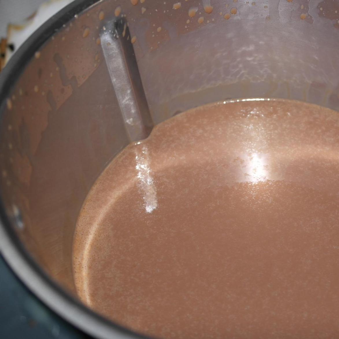 1. Mettere nel coperchio chiuso"coperchio chiuso" latte, zucchero e cioccolato a pezzi: 10 min 90^ vel 3