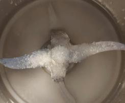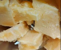 7. Trascorso il tempo nel frizer togliere il composto e tagliatelo a pezzi e mettete nel coperchio chiuso"coperchio chiuso"
