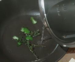 2. Quando sarà pronto mettere in un piatto fondo o ciotola con timo fresco e buccia di lime solo parte verde e fate raffreddare in modo che prenda sapore
