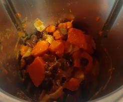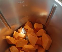 "coperchio chiuso" mettere olio e spicchio di aglio in camicia rosolare per 3 minuti 100 °Vel 1 - Togliere l'aglio e mettere la batata in cubetti e cuocere per 10 minuti