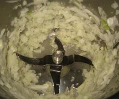 "coperchio chiuso" la cipolla tagliata in quarti, tritare 3 Sec. Vel. 5.