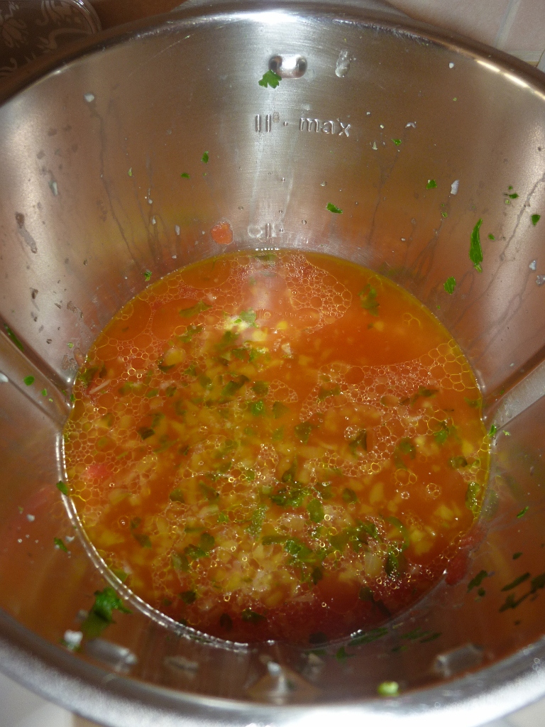 4. Aggiungere ora il sale, la polpa di pomodoro e l'acqua, posizionare il varoma vuoto e a coperchio chiuso (senza il vassoio piccolo) : Varoma, 5 min. vel.1;