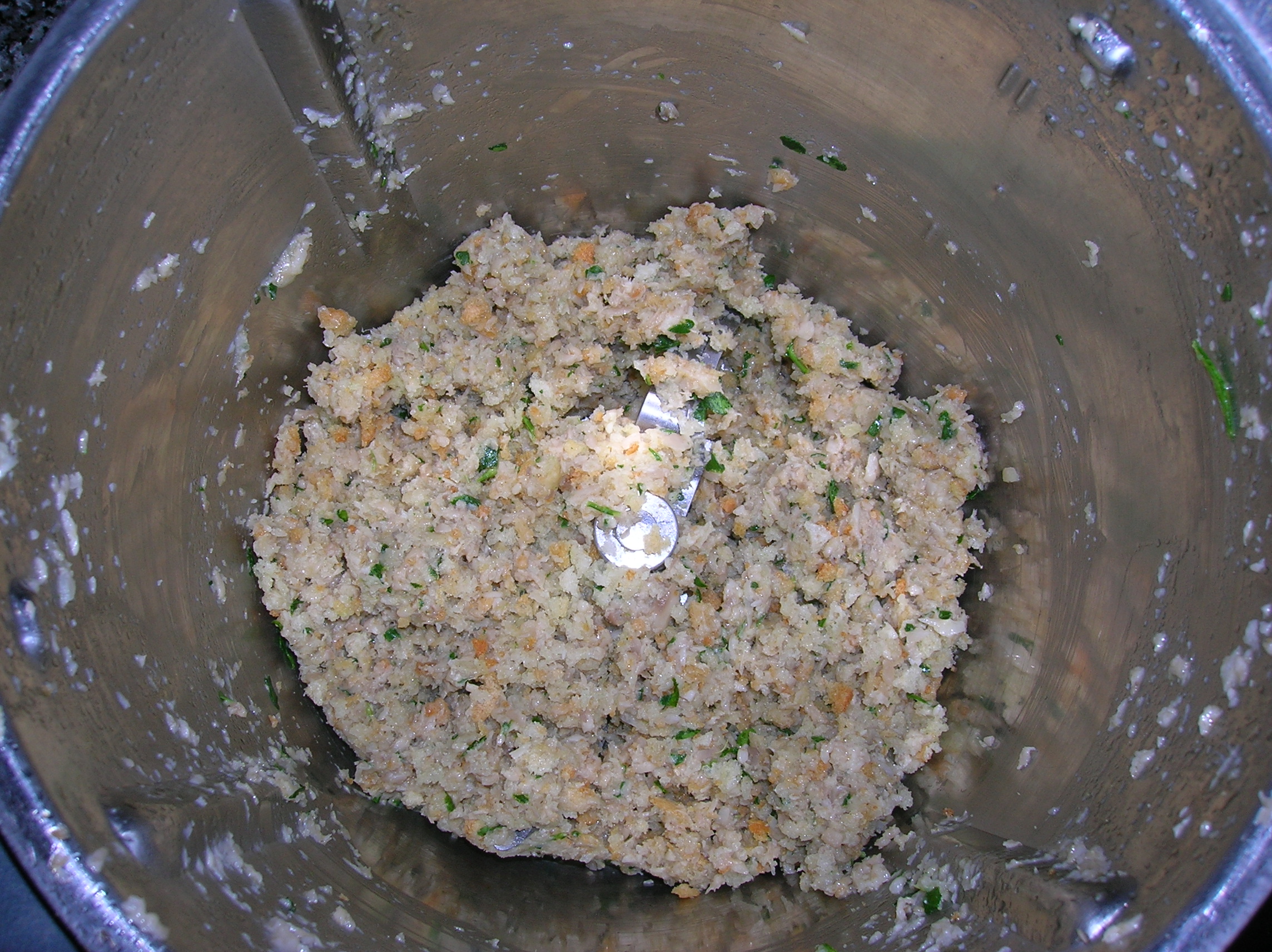 - Inserire nel boccale: pane, formaggio e prezzemolo: tritare: 10 sec. vel. 8 e mettere il trito da parte;