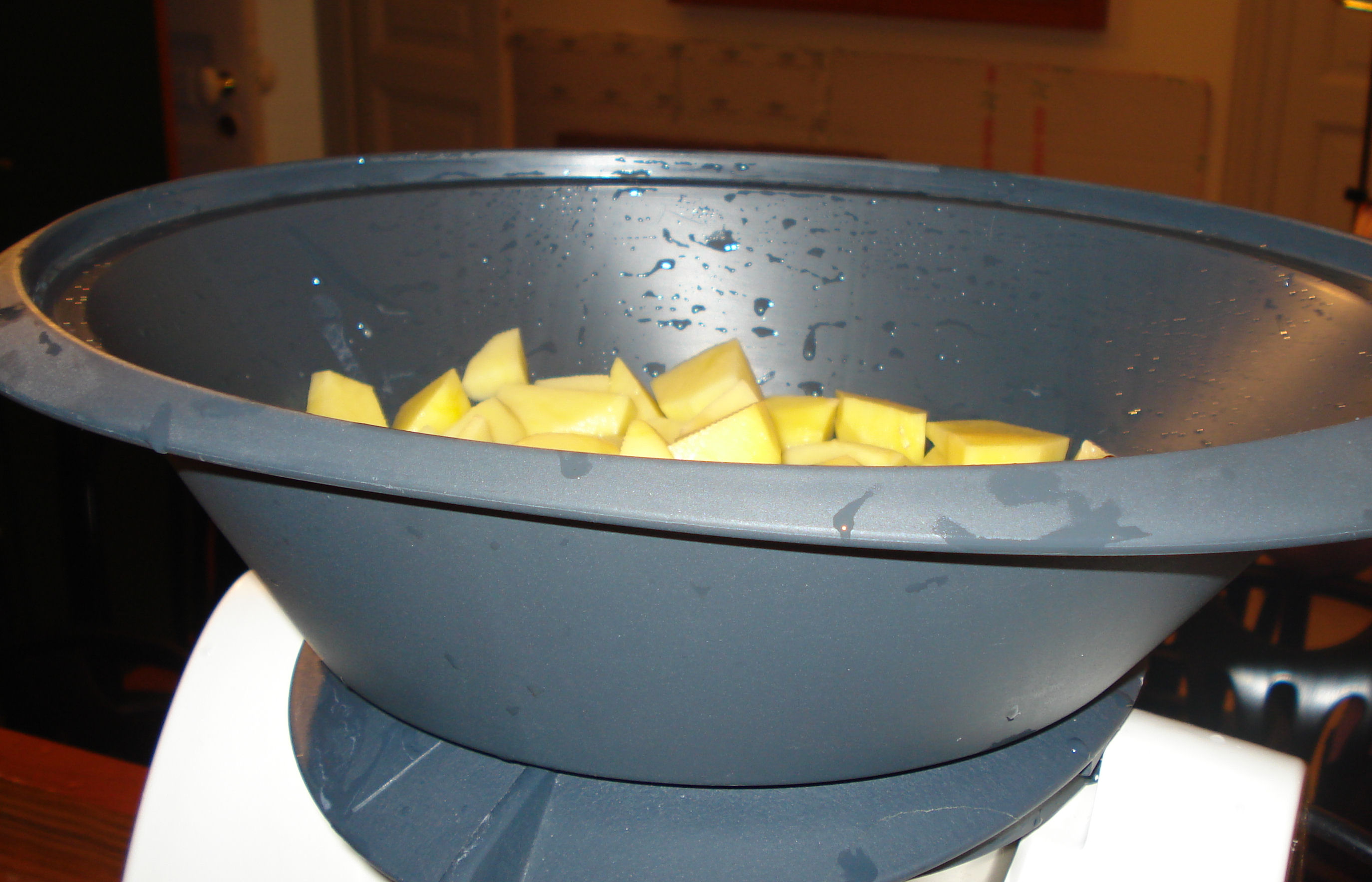 2. Disporre le patate nel Varoma, posizionarlo sopra al boccale e cuocere: 25 min./Varoma/vel. 2.