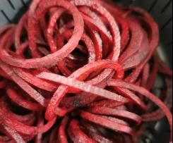 - Inserire il cestello e tagliare le Barbabietole rosse (io ho usato lo spiralix per dare la forma di spaghetti).