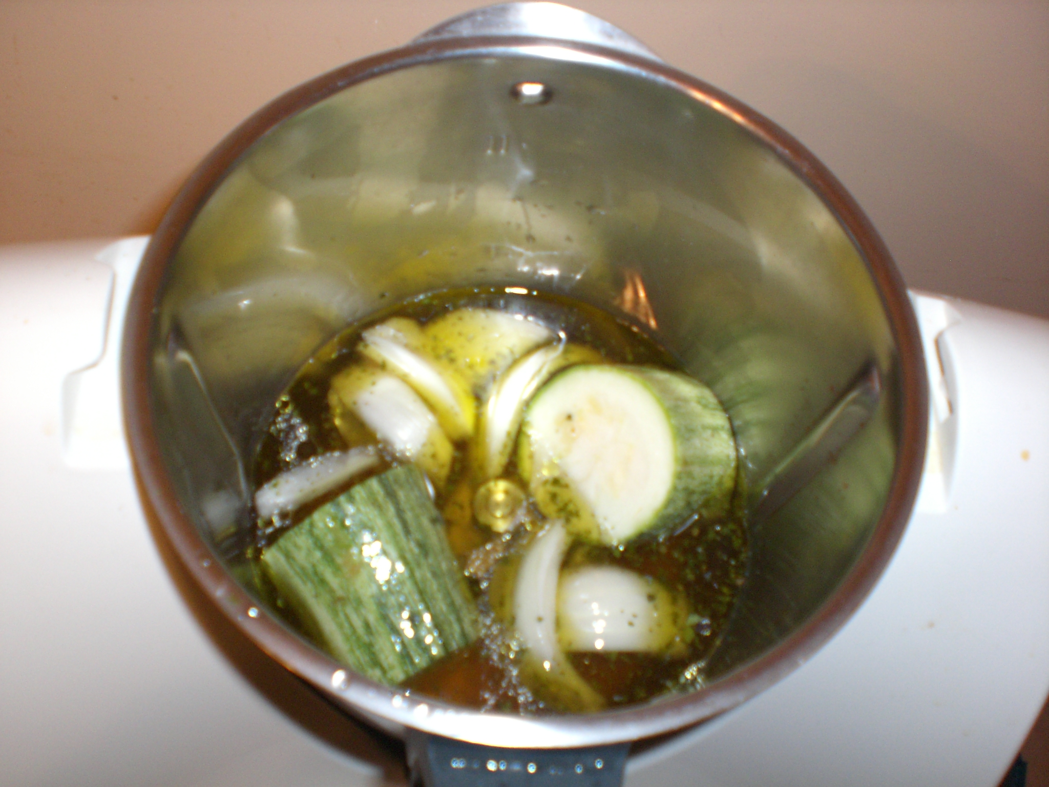 nel aggiungere acqua zucchina cipolla prezzemolo e aromi vari, vel turbo per qualche secondo
