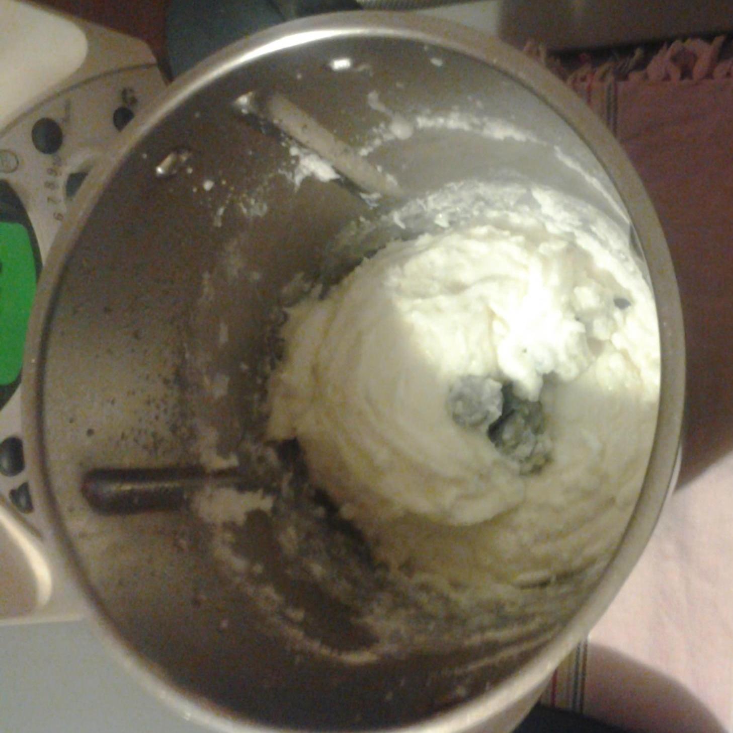 Per preparare la ganache che è stata utilizzata come copertura, inserire nel boccale la farfalla, versare il composto raffreddato e montare per circa 4 min. vel. 3/4.Per questa preparazione si suggerisce di non impostare il timer ma di osservare dal foro del coperchio quando la ganasche raggiunge la consistenza desiderata, ci vogliono circa 4 minuti, ma ogni panna monta in tempi diversi.