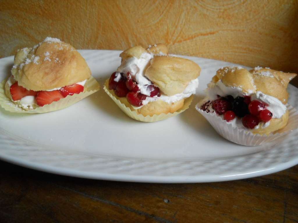 "coperchio chiuso" pulito montare la panna inserire la farfalla e montate per 2 Minuti Vel 3 finche non monta tenetela controllata dal foro Ora sempre con un latra saccaa poche metterci dentro la nostra panna e ora prepariamo i nosttri Bigne' golosi taglaiteli a meta ma non tutti lasciate un pezzo attacato meterci panna e frutta fresca e riponeteli in un vassoio io ho fatta una fila con fragole una con frutti di bosco e una con ciliege