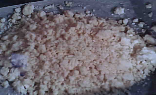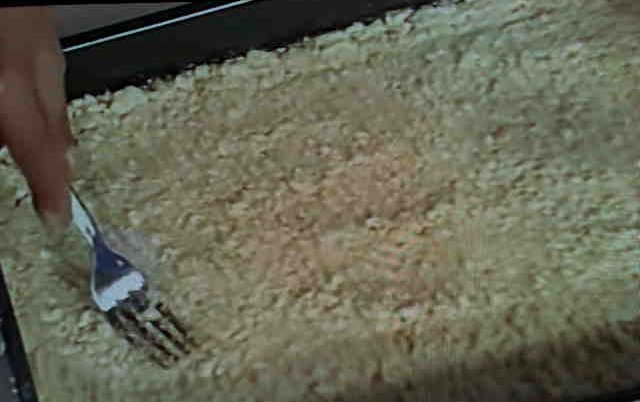 senza schiacciare riunire le briciole sopra un foglio di carta forno e con una forchetta livellare tutto per bene