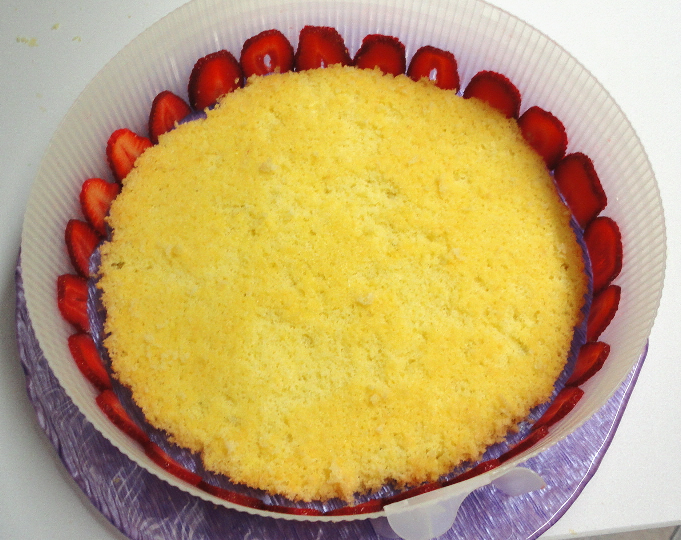 Preparate il pan di spagna possibilmente il giorno prima di modo che sarà più semplice tagliarlo in 2.