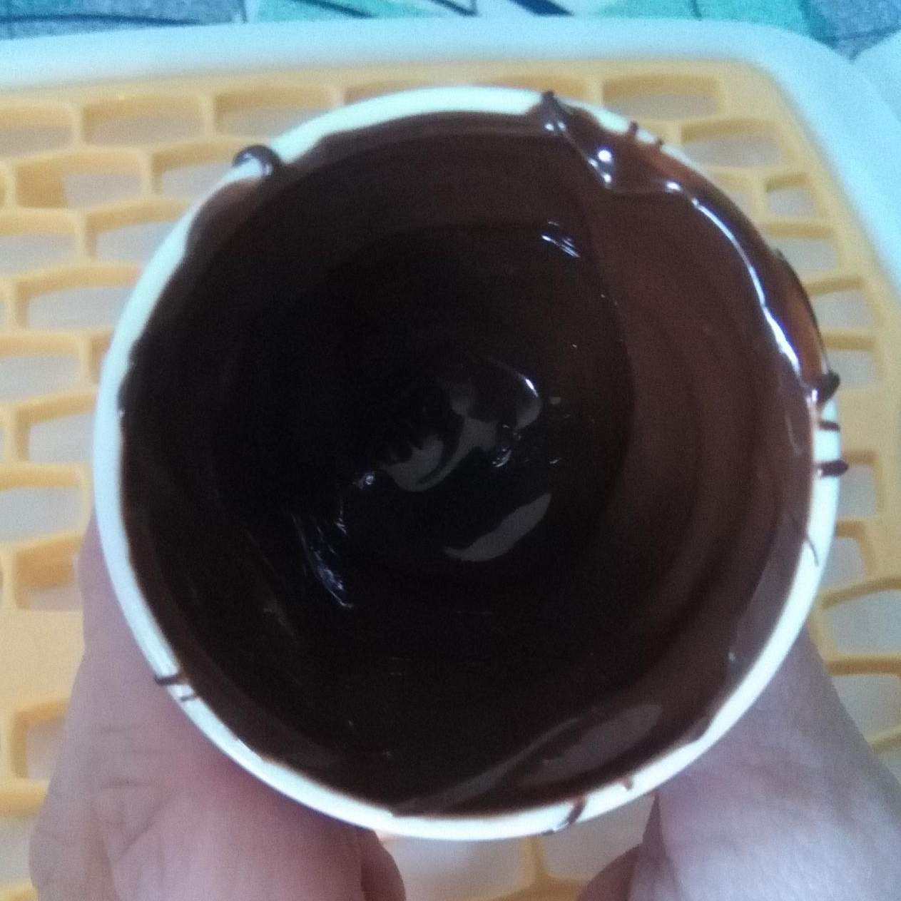 - Capovolgere i bicchieri su una gratella mentre preparate gli altri quindi mettere in freezer per 10 minuti. Ripetete l'operazione mettendo un altro stato bello abbondante di cioccolato e riporli nuovamente in freezer per solidificare (io li ho lasciati un paio d’ore).