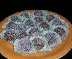 Togliere le palline dal congelatore e immergerle ad una ad una nel cioccolato aiutandosi con uno stuzzicadenti. - Rotolare nel cocco e riporre nel congelatore fino all' utilizzo.