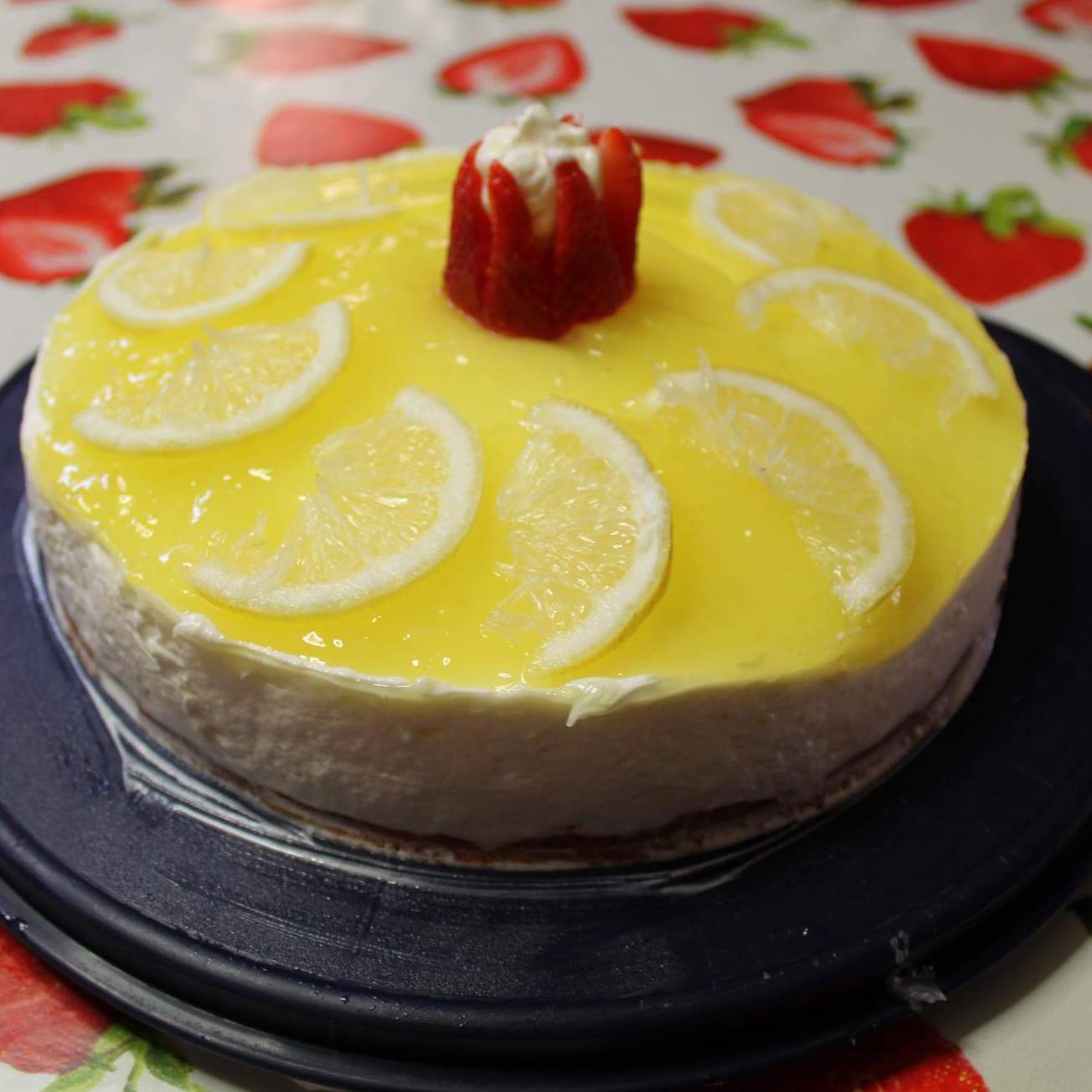 Rimettere il cheesecake in frigo per un’ora quindi toglierlo dallo stampo a cerniera, disporlo su un piatto da portata e guarnirlo con degli spicchietti di limone fresco...io ci ho aggiunto anche una piccola fragola....ottimooo