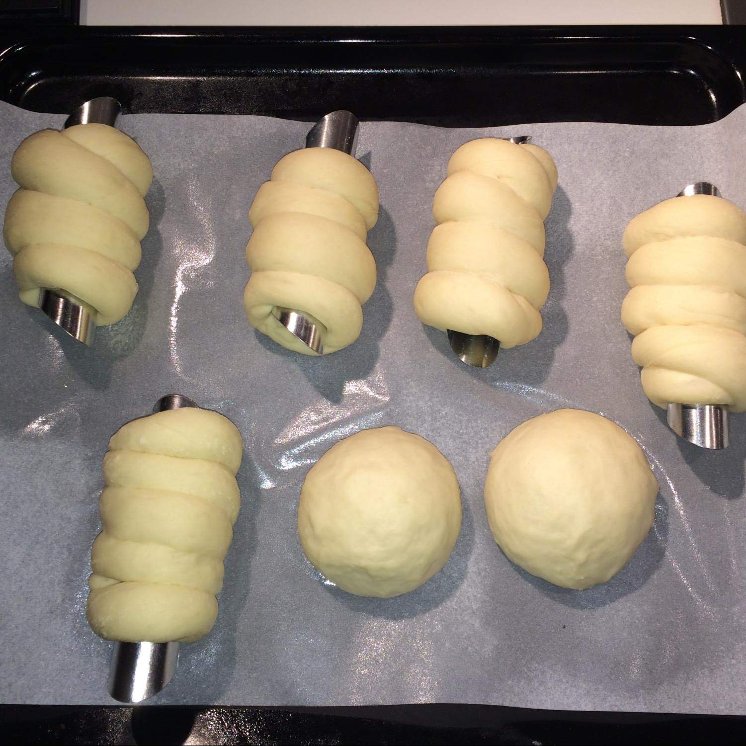 Riporre i cannoli realizzati su una teglia foderata con carta forno precedentemente trattata con burro spray (potete in alternativa trattarla con olio). lasciare lievitare i cannoli realizzati per un altra ora.