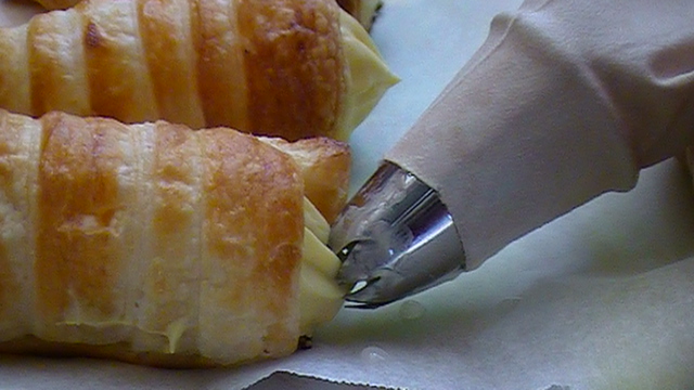 Mettere la crema chantilly nella sac a poche e riempire i cannoncini.