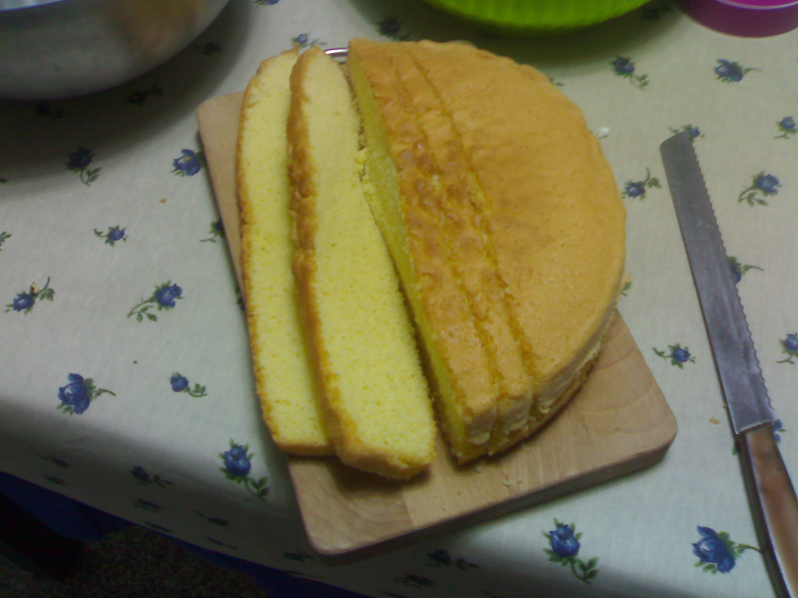 Tagliare il pan di spagna a fette, eliminare la parte esterna, foderare uno stampo con il pan di spagna, bagnare il pan di spagna con il rum.