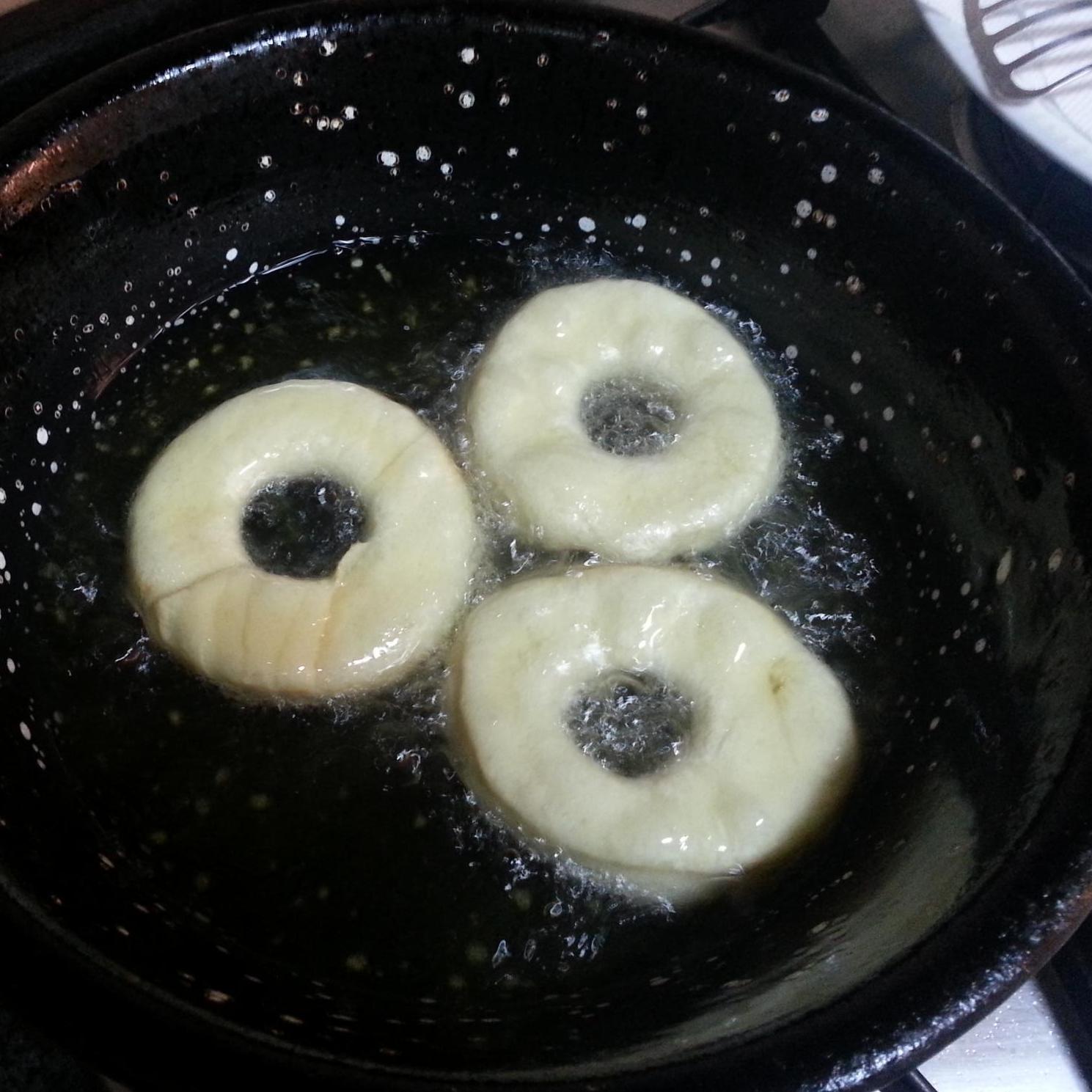Far lievitare ancora mezz'ora e poi friggere in olio caldo (non bollente, altrimenti non cuociono bene all'interno). Sgocciolare e passarle nello zucchero.