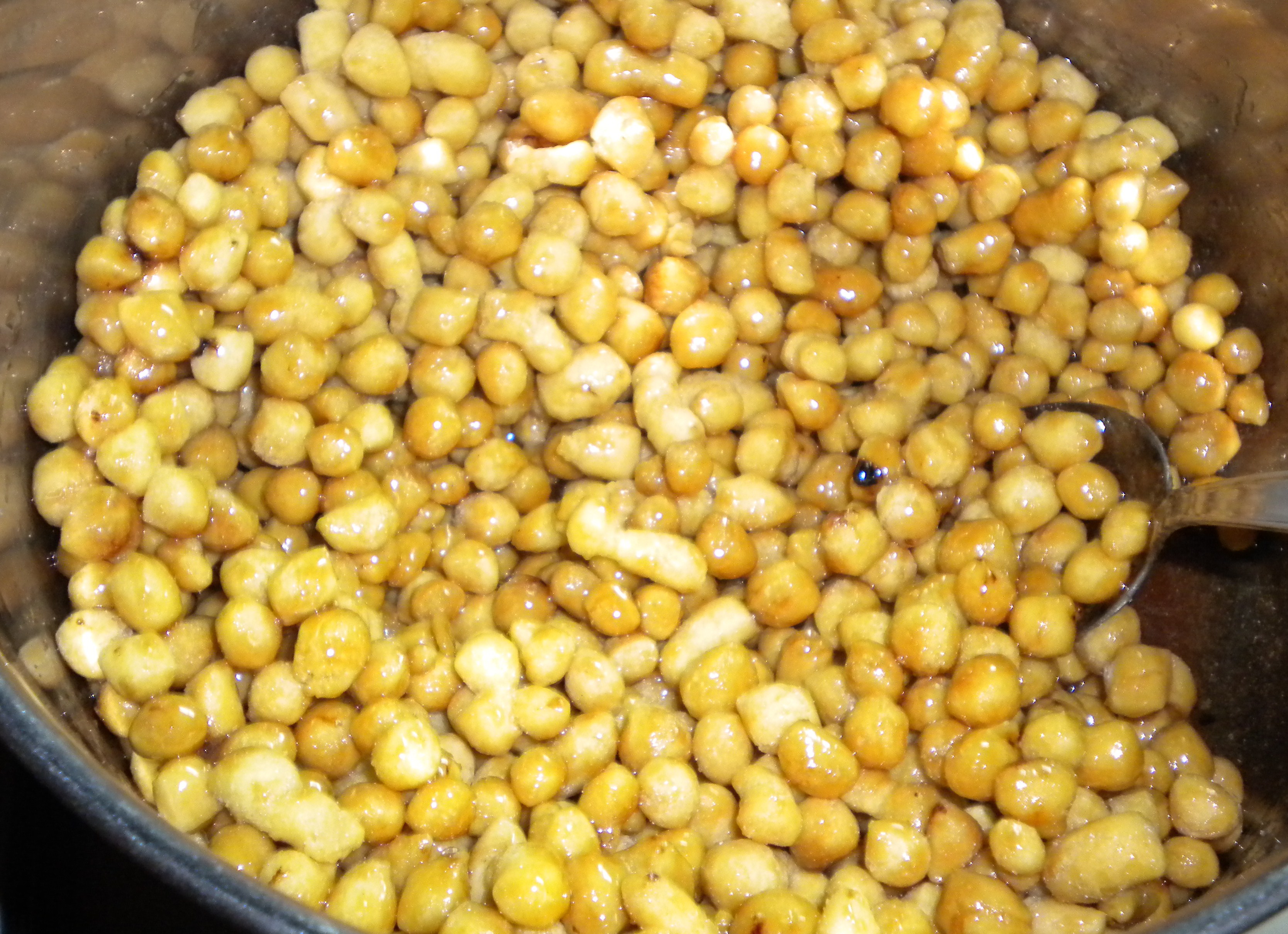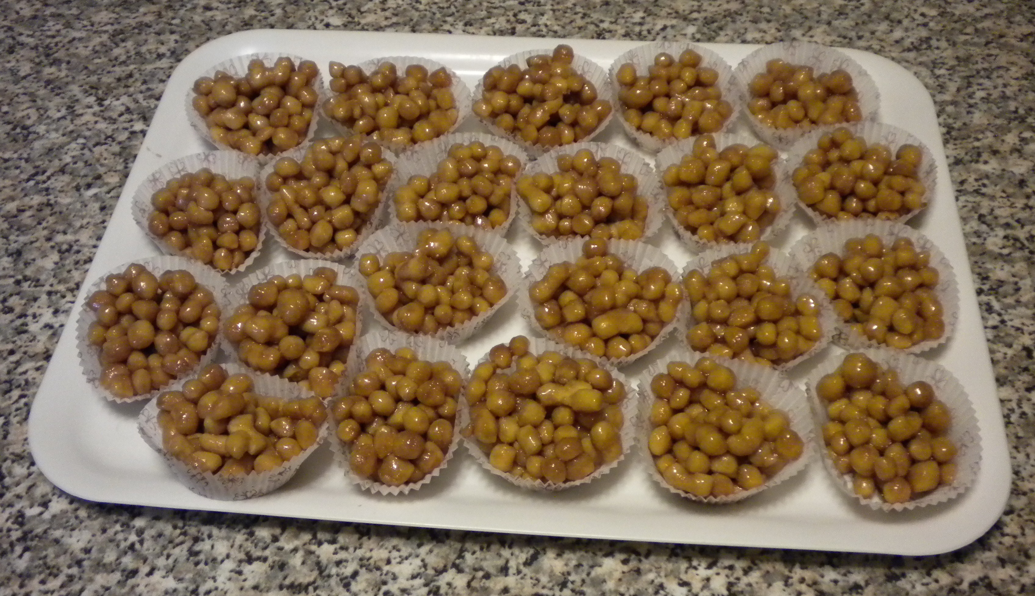 "coperchio chiuso" tutti gli ingredienti 30 sec vel 5. Trasferire il composto sul piano di lavoro e aggiungendo se serve un po di mix fare tanti piccoli gnocchetti ed infarinarli bene per evitare che attacchino tra di loro. Scaldare l'olio friggere gli gnocchetti finchè cominciano a dorare e mettere su carta assorbente. In una teglia mettere lo zucchero e il miele e fondere a fuoco lento quindi, se si vuole, aggiungere il cacao. Versare gli gnocchetti nella pentola e mantecare finche il composto è ben amalgamato quindi impiattare velocemente prima che raffreddandosi solidifichi. Io ho fatto monoporzioni nei pirottini ma si può fare un piatto unico dando la forma che più si preferisce (eventualmente aiutandosi a compattare il tutto con due mezzi limoni)Questa ricetta è di Tizyan tratta dal forum cucina in simpatia, che ringrazio, naturalmente io l'ho fatta con il bimby e ho deciso di pubblicarla ( anche se non è mia) perchè purtroppo le persone che hanno bisogno di queste cucine particolari sono sempre di più e mi sembra giusto darsi una mano soprattutto quando le ricette sono ottime come questa.